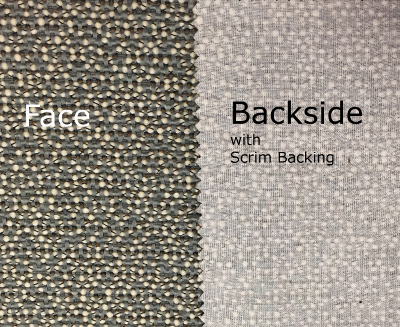 Our FabScrim ® scrim backing is a woven poly/cotton fabric which is thermally bonded to upholstery fabric to add strength, stability and body. Slightly heavier and less elastic than knit backing, scrim backing is primarily used for stabilizing open or loosely woven fabrics.